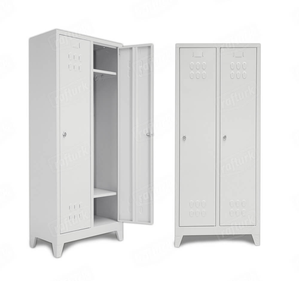Raftürk, spor salonları, fabrikalar, okullar ve iş yerleri için özel olarak tasarlanmış soyunma dolapları ile kullanıcıların eşyalarını güvenli ve düzenli bir şekilde saklamasını sağlar. Öncelikle, dayanıklı malzemelerden üretilen dolaplar uzun ömürlü kullanım sunar ve kişisel eşyaların korunmasını garanti eder. Böylece, hem işyerlerinde hem de spor ve eğitim alanlarında düzen sağlanır.